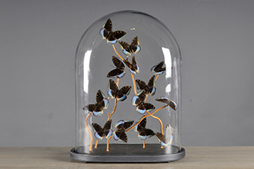 Papillons “Lexias” délicatement posés sur des branches de saule, présentés sous un élégant globe ovale. Chaque globe est une création unique et originale, réalisée à la main dans nos ateliers. Pièce exceptionnelle et centrale dans un Cabinet de Curiosités.