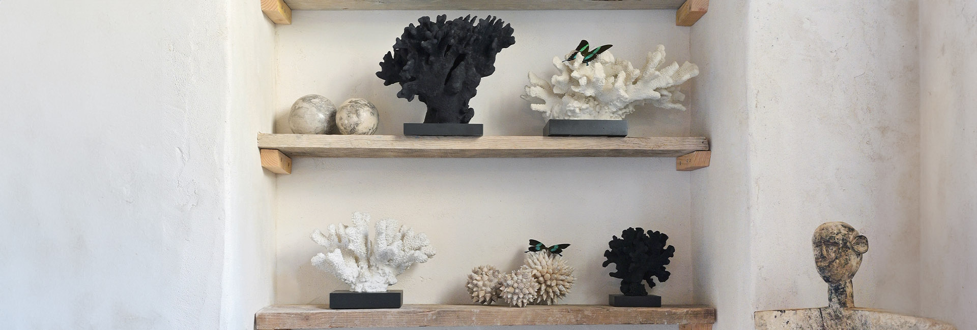 Coraux, Gorgones, Bénitiers.. Des répliques de haute qualité, fabriquées artisanalement à la main reproduisant à l’identique la texture de ces spécimens qui, pour la plupart, sont aujourd’hui protégés. Elles seront parfaites pour intégrer un Cabinet de Curiosités ou une Décoration Contemporaine tout en préservant Dame Nature !