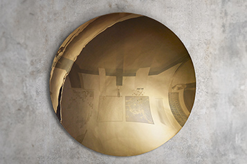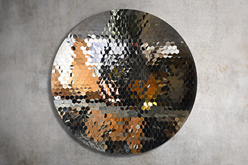Miroir-Parabole pour un effet optique définitivement futuriste ! L'environnement qu'il reflète provoque une multitude d'ondes, à l'image d'un ricochet venant troubler la surface du métal.