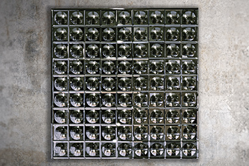 Ce miroir est constitué de 240 petits miroirs à facettes jouant un effet de kaléidoscope mural, un clin d'œil aux célèbres robes à facettes des années 70. Effet d'infini garanti ! De tailles et formes différentes, il ajoutera une touche rétro-futuriste à votre espace.