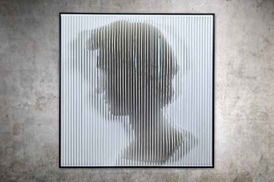 Les illusions d’optique étaient une passion pour les peintres du "Quattrocento". Ici nous avons joué avec elles en 3D : l'acrylique en est le matériau de prédilection pour un effet définitivement contemporain avec cependant un clin d'œil à l'apollon de l'époque classique de Michel Ange ! Un tableau contemporain à contempler en se déplaçant, bien évidemment !