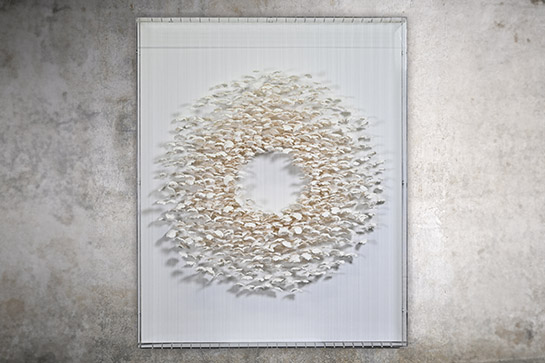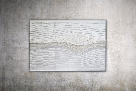 Subtil clin d'œil aux mystères du Trou Noir et à cet espace qui le délimite que l'on nomme "l'Horizon des événements". Ce tableau contemporain est réalisé à partir de jeux de papiers blancs superposés, car l'artiste a tenté de capturer l'essence de cette zone qui encercle le vide, cet espace d'où aucun objet, ni même un rayon de lumière ne peut jamais s’échapper.